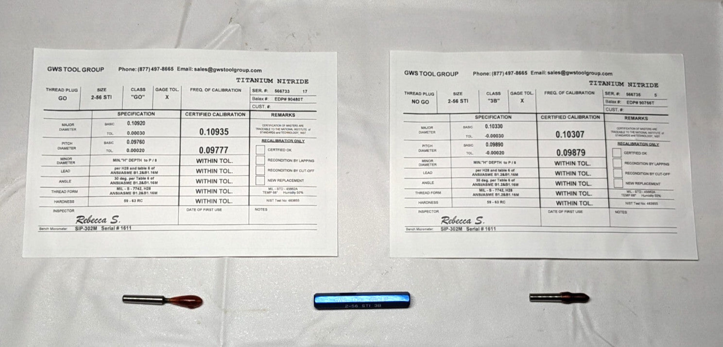 2-56 Thread, Class 3B, Screw Thread Insert Go/No Go Gage