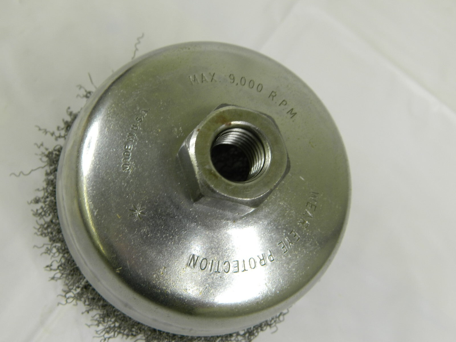 WEILER Cup Brush: 4″ Diam, 0.014″ Wire Diam, Steel, Crimped 93652