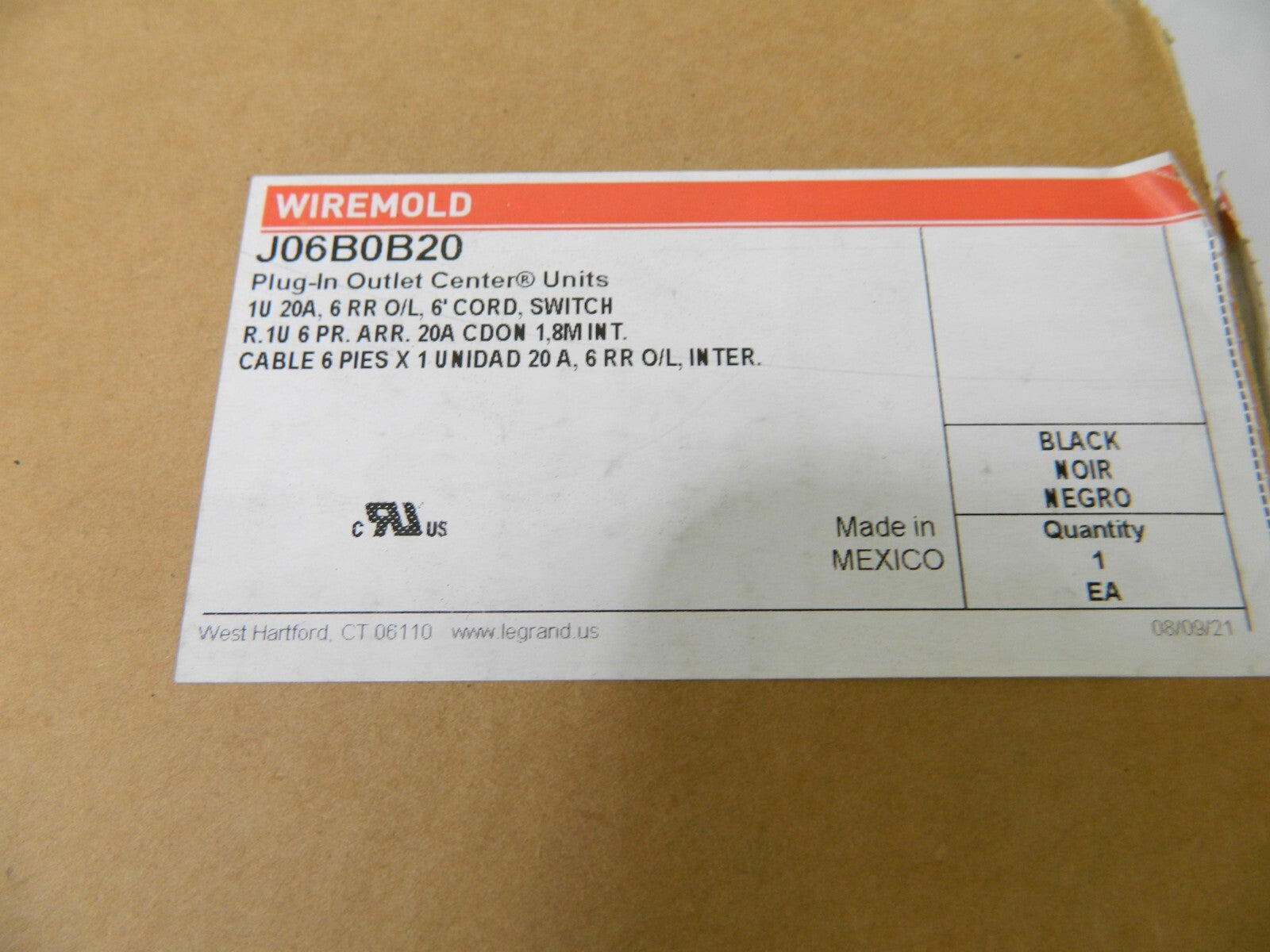WireMold 19" Rackmount 6 Outlet 120V 15A Power Distribution Unit Strip J06B0B