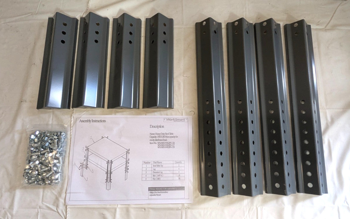 *This WorkSmart Work Table is being sold as a NEW/OPEN BOX item due to sustaining damage during shipping. This is a NEW/UNUSED ITEM that has a few cosmetic scuffs from being handled. The Top and Bottom Shelves have a couple of small dents along the edge. Please see our photos. This Table has been inspected and repackaged.