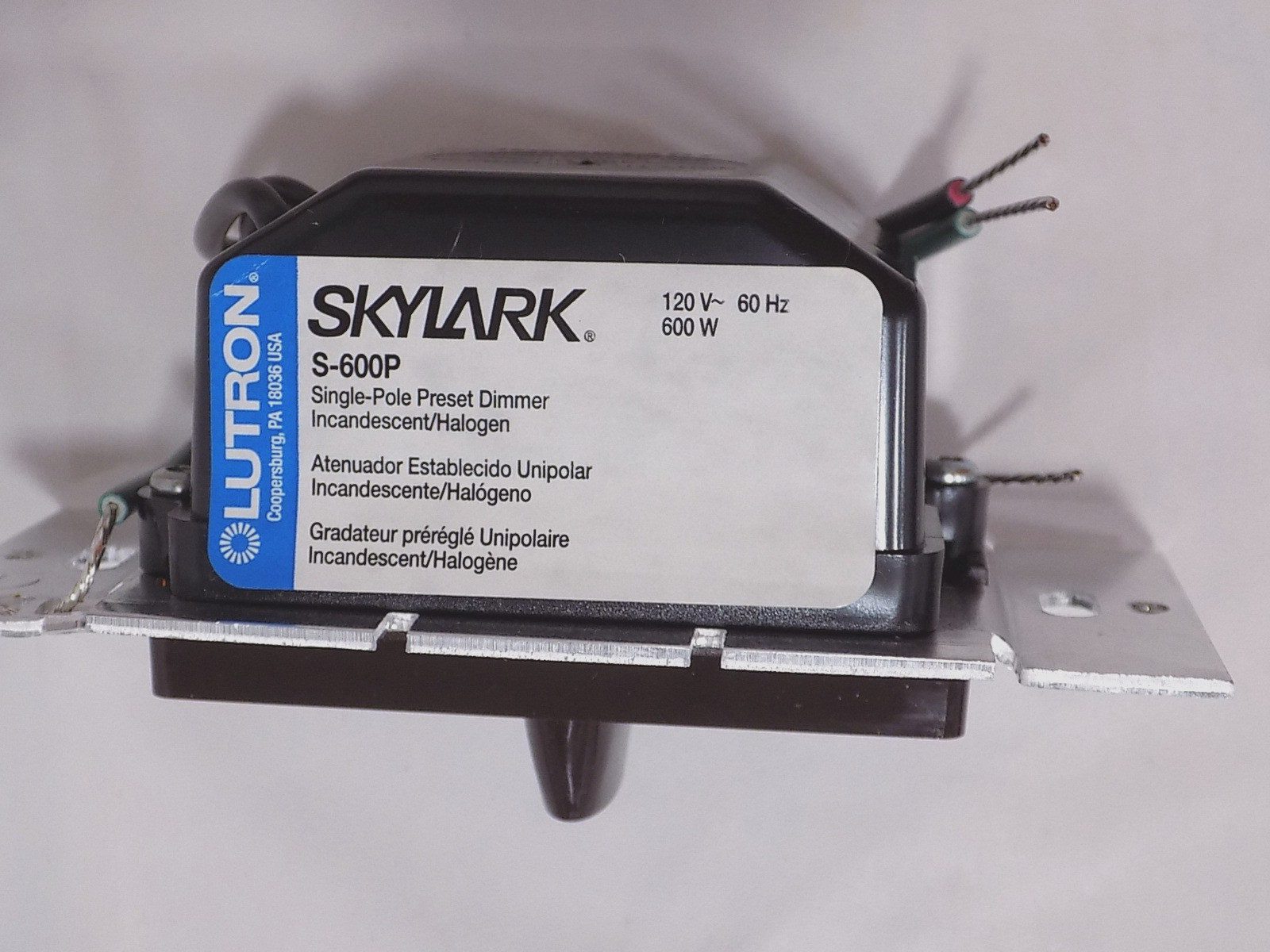 Lutron S-600P-BR Skylark 600W Single Pole Preset Dimmer w/Rocker Switch Brown