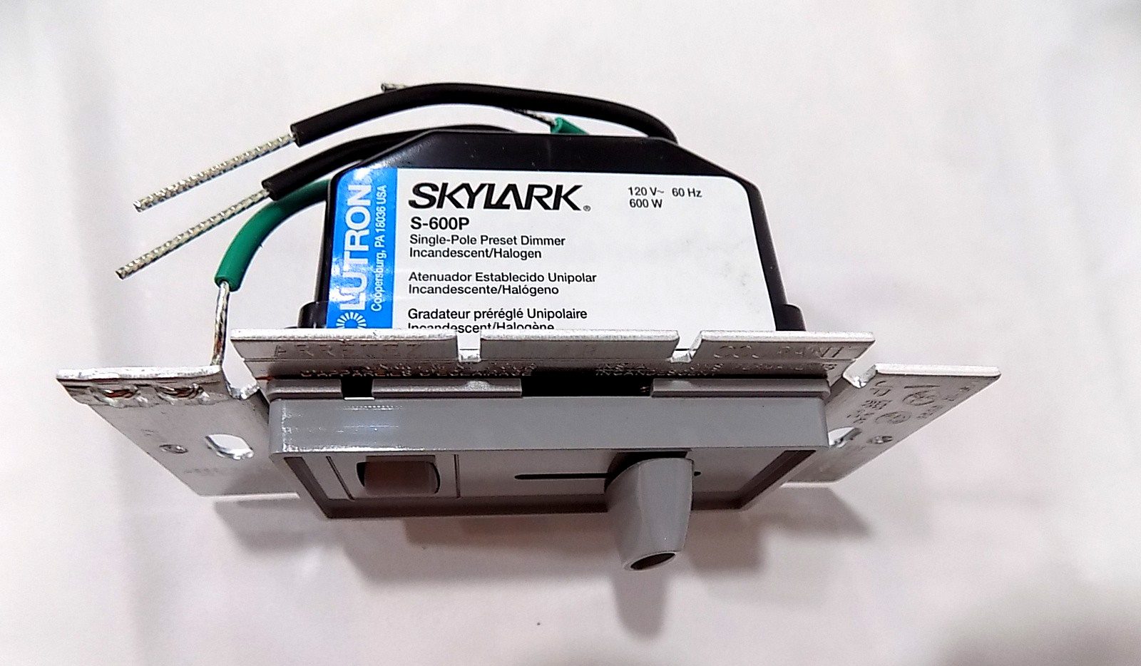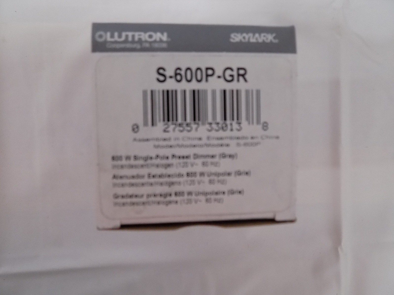 Lutron S-600P-GR Skylark 600W Single Pole Preset Dimmer w/Rocker Switch Gray