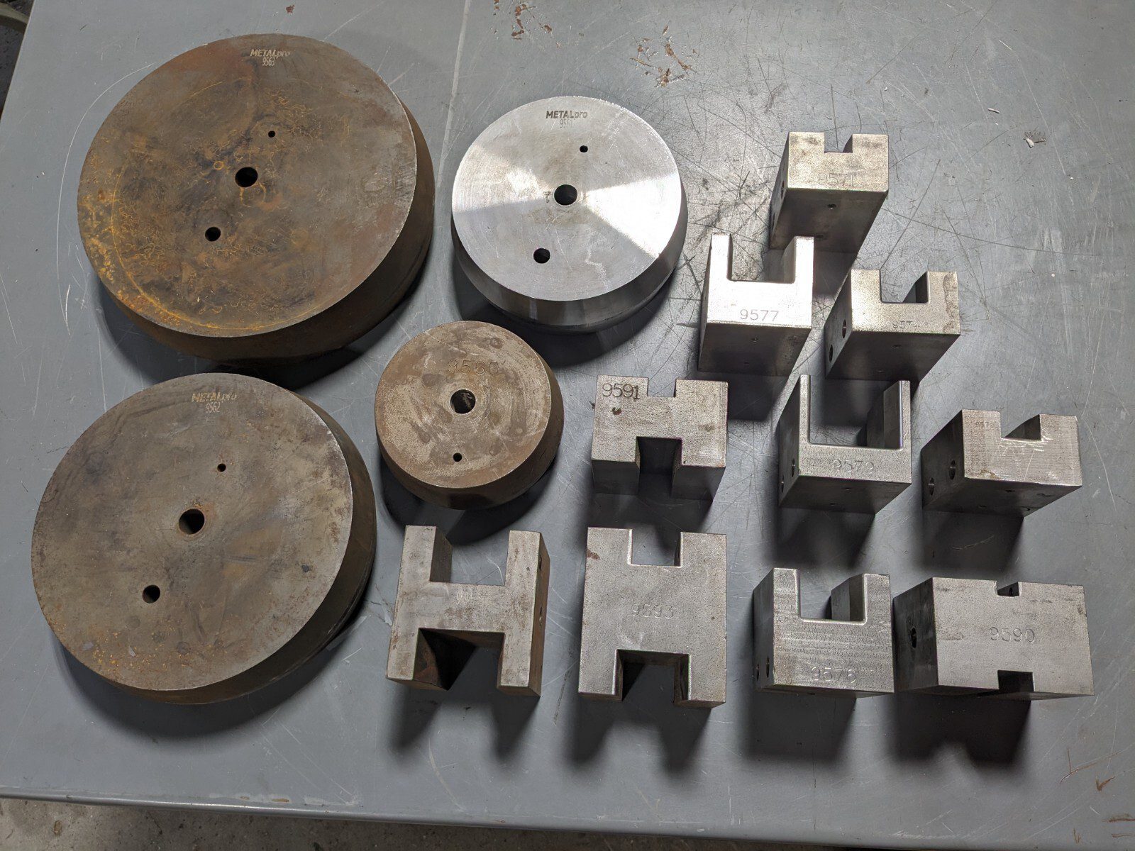 Cosmetic wear from storage- surface rust, nicks and scuff marks on some of the dies (see pictures).